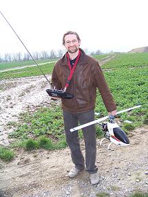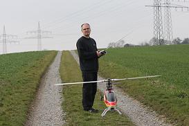 Er hat uns alle, mehr oder weniger, mit dem Helifliegen angesteckt. Gleichzeitig ist er auch der erfahrenste und versierteste Helipilot in unserer kleinen Gemeinschaft. In Bezug auf Motorisierung, Akkutechnik, Einstellungen und Tuning ist er unser “Ingenieur”. Im übrigen ist er 3D Spezialist. Es sollte ihm mal jemand sagen, dass man den Heli nicht nur auf dem Rücken fliegen kann.